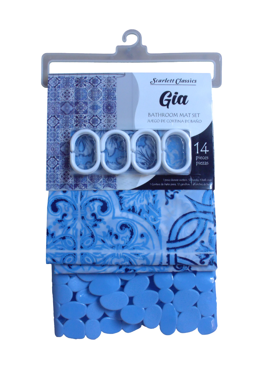 04BA4263-S/C 14PC.PL.BATHROOM MAT W/SHOWER CURTAI...