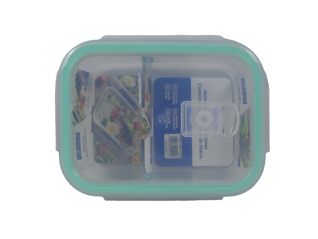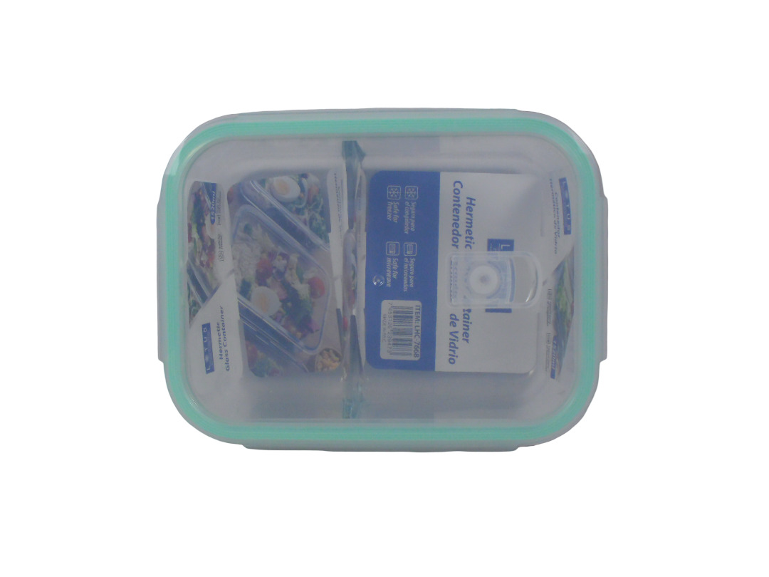 03LHC7585-640ML RECT.HERMETIC GLASS CONTAINER W/DI...