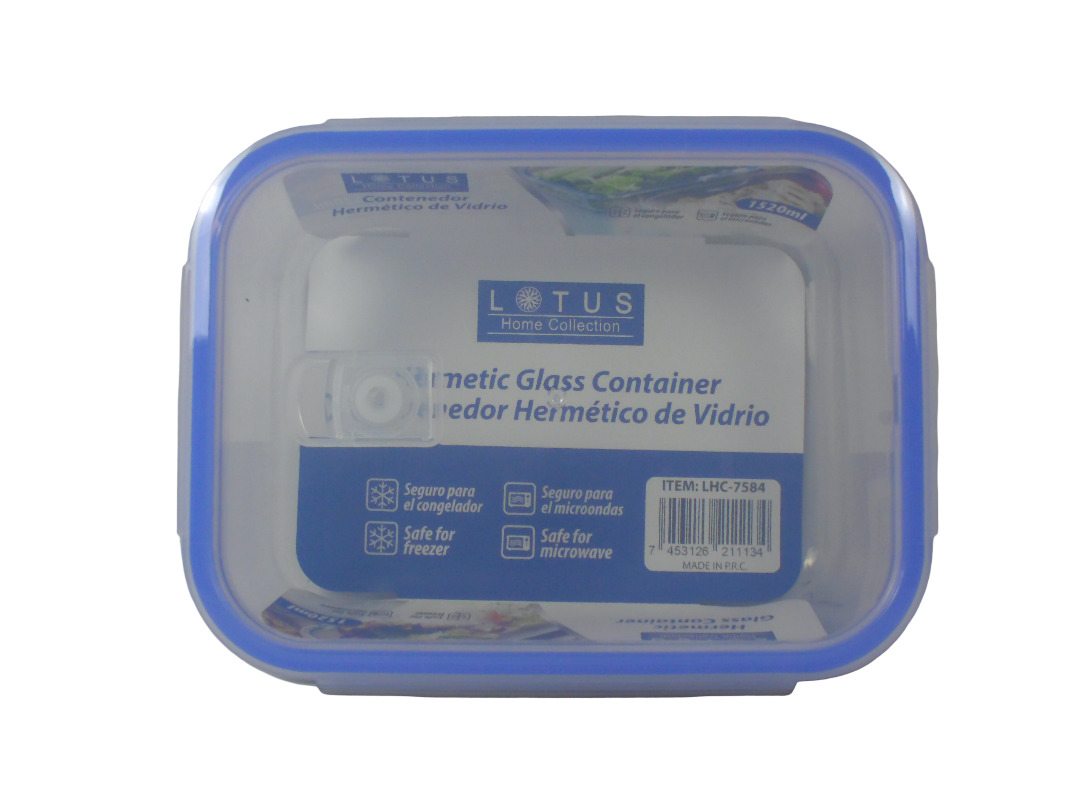 03LHC7584-1520ML RECT.HERMETIC GLASS CONTAINER W/L...