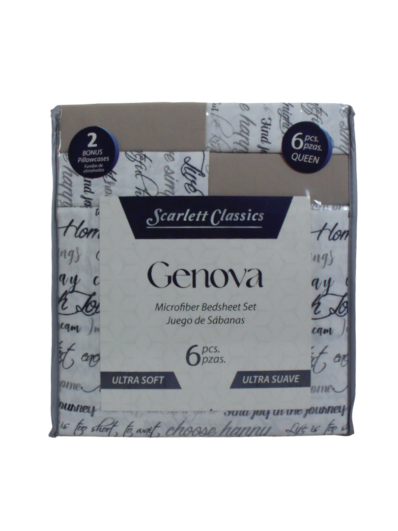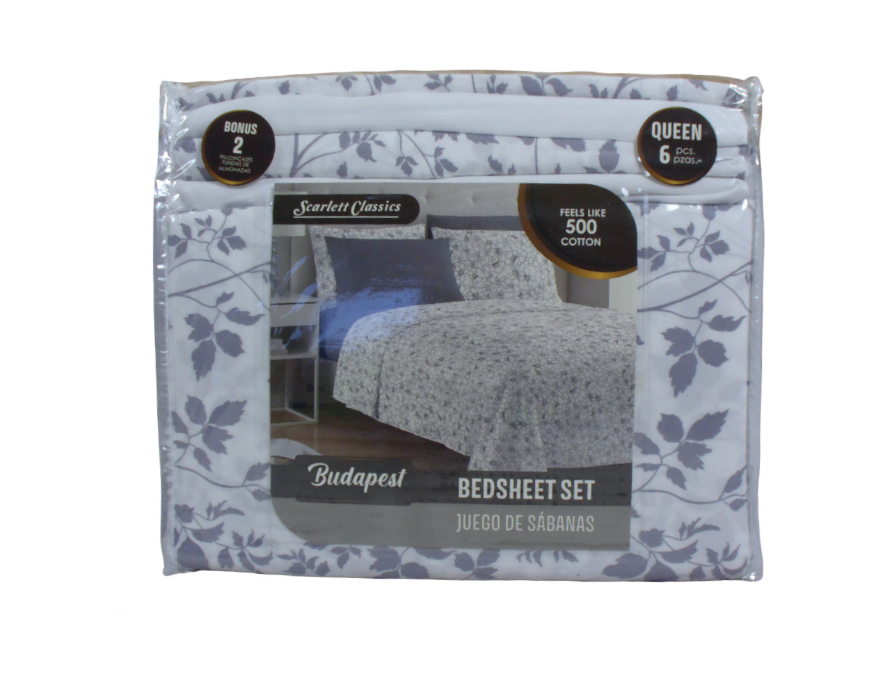 22NV1576-S/C 6PCS. PRINTED BEDSHEET SET - QUEEN