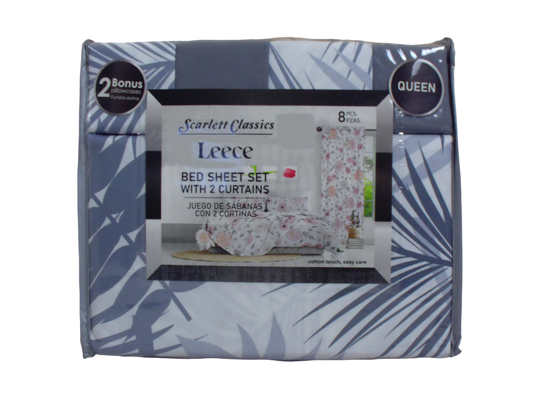22NV1579-S/C 8PCS.QUEEN PRINTED BEDHSEET SET W/CU...