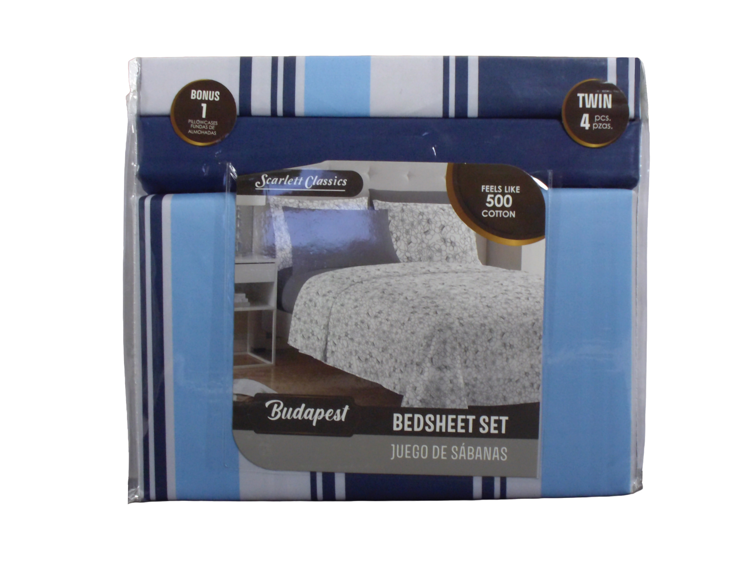 22NV1566-S/C 4PCS. PRINTED BEDSHEET SET - TWIN