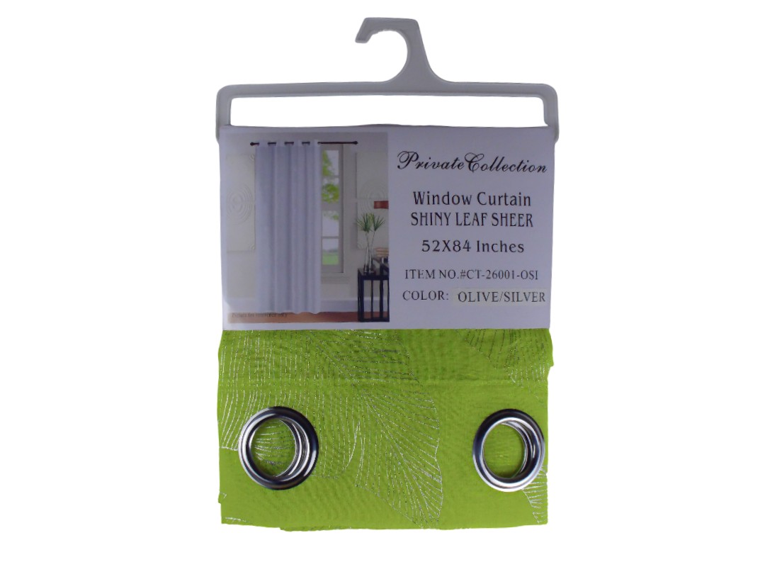 22ct26001osi-52*84" SHINY LEAF SHEER CURTAIN-OLIVE/SI...