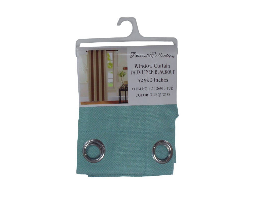 22CT26010TUR-52*90" FAUX LINEN BLACKOUT CURTAIN -TURQ...