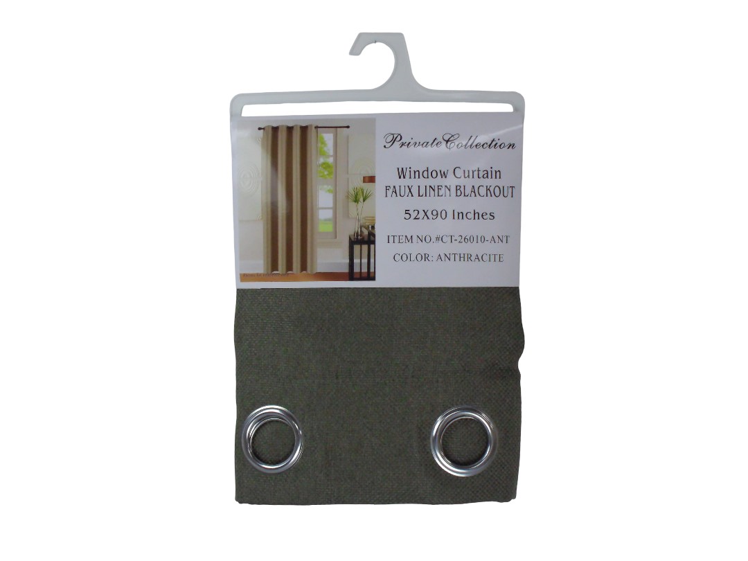 22CT26010ANT-52*90" FAUX LINEN BLACKOUT CURTAIN-ANTHR...