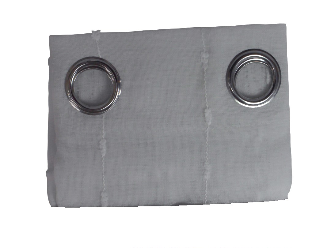 22CT23064WHT-52*90"FAUX LINEN DOT STRIPED SHEER W/CUR...