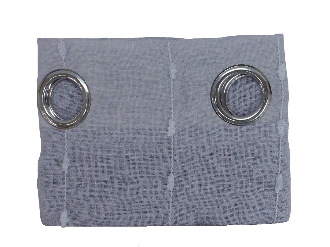 22CT23064GRY-52*90"FAUX LINEN DOT STRIPED SHEER W/CUR...